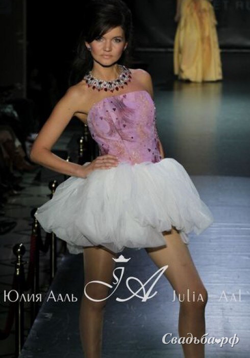 Эксклюзивное свадебное платье с короткой юбкой из французского фатина позволит Вам продемонстрировать свои прекрасные ножки. Корсет с открытой зоной декольте украшен вышивкой ручной работы. Это дизайнерское платье едва доходит до середины бедра и непременно приглянётся самым кокетливым невестам. Возможно другое цветовое решение по желанию клиента.