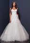 Копия известного бренда CASABLANKA. Изысканные рельефные узоры вышивки полностью покрывают удлинённый корсет с открытым фигурным лифом и спускаются на пышную юбку, состоящую из многочисленных слоёв невесомой сетчатой ткани. Модель выглядит очень элегантно и, в то же время, невероятно романтично.