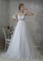 Сногсшибательное свадебное платье А-силуэта выполнено лучшими дизайнерами России из нежного кружева. Полупрозрачная вставка на груди придаёт образу невинность. Талия подчёркнута сверкающим поясом. Пышная юбка с завышенной талией зрительно вытягивает силуэт. Наряд дополнен кокетливым шлейфом. Нежность и стиль в одном флаконе!