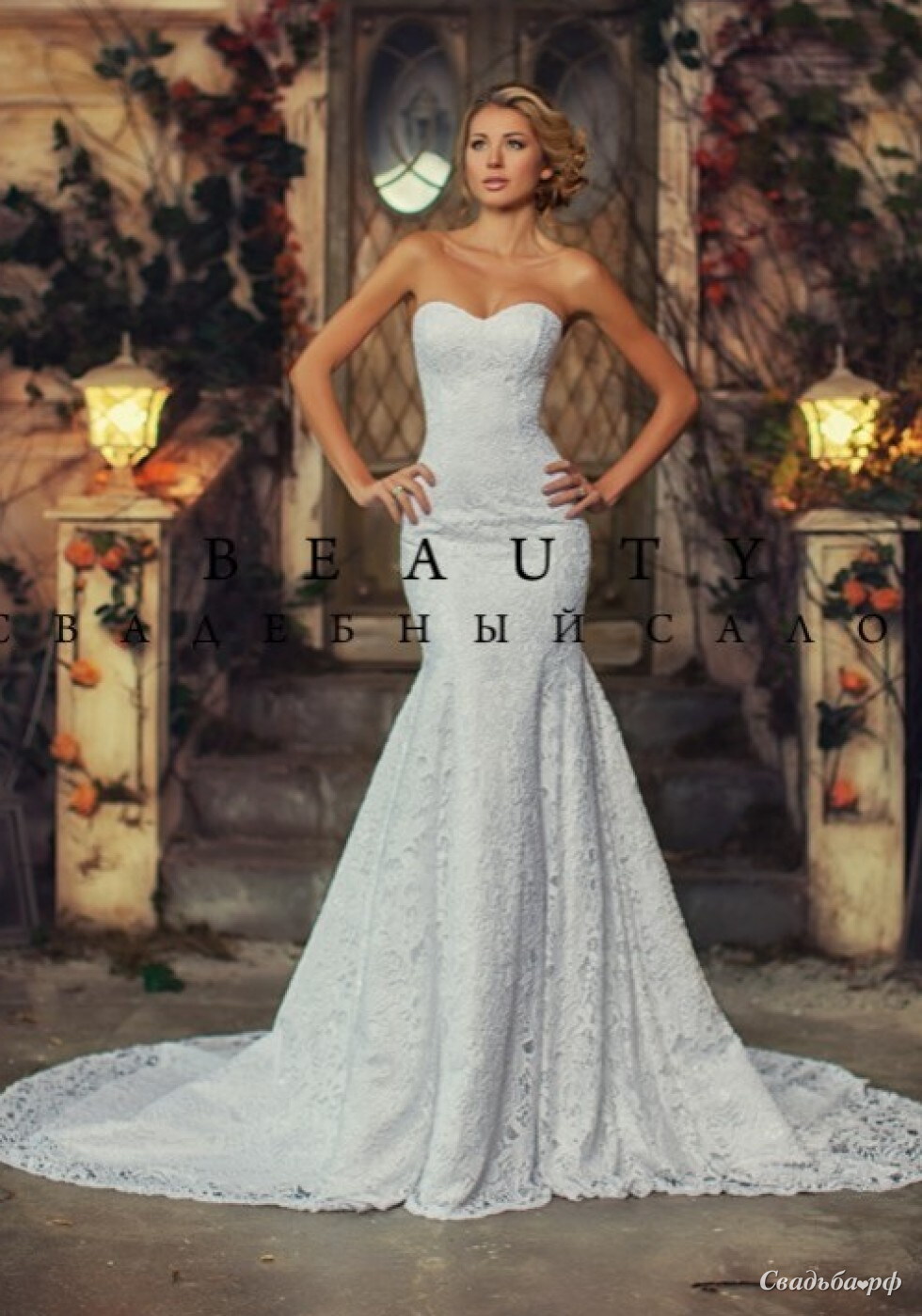 Кружевное платье-рыбка со шлейфом
