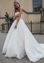 Пышное свадебное платье в цвете айвори, со шлейфом.