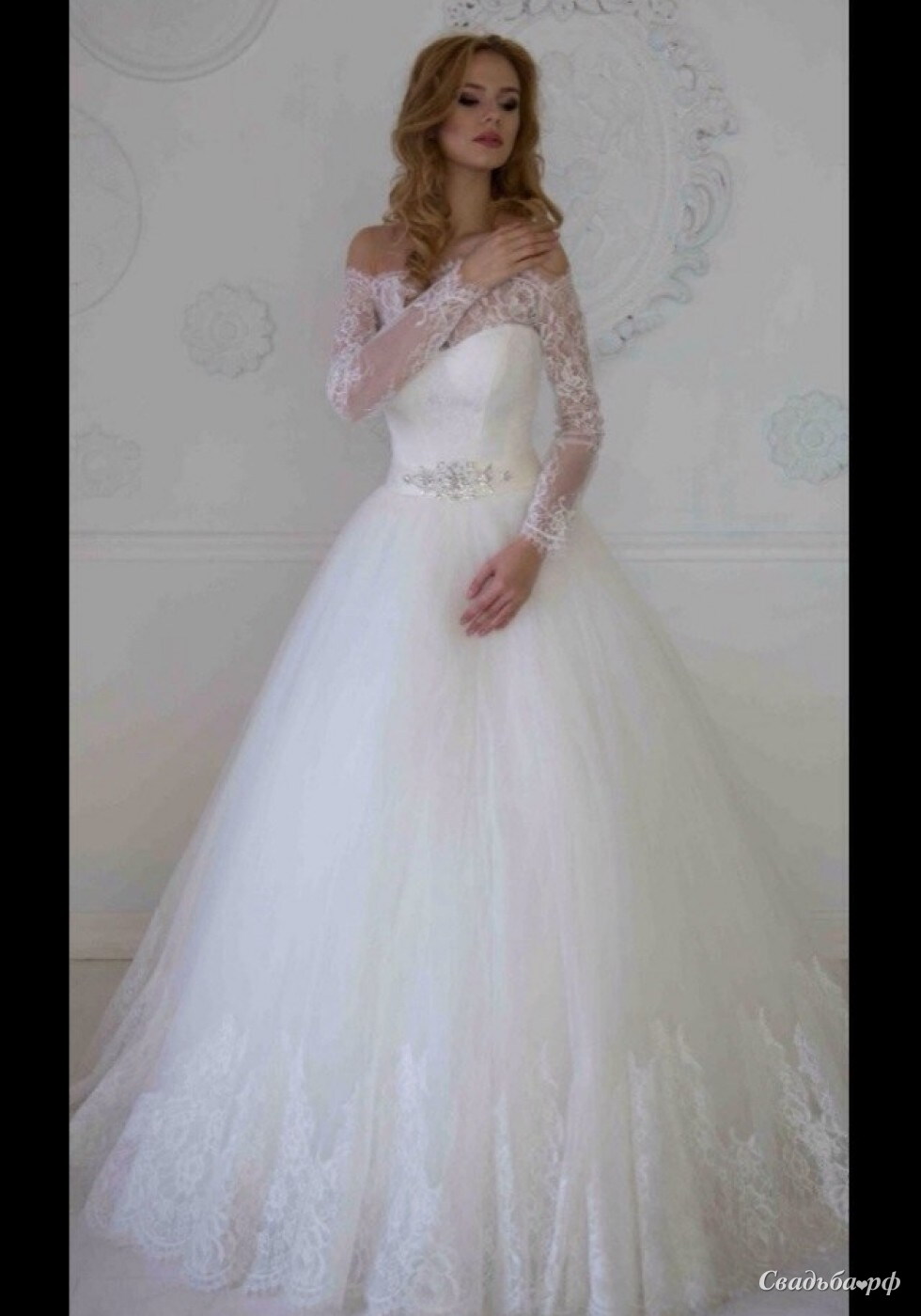 Свадебное платье с закрытым верхом из кружева