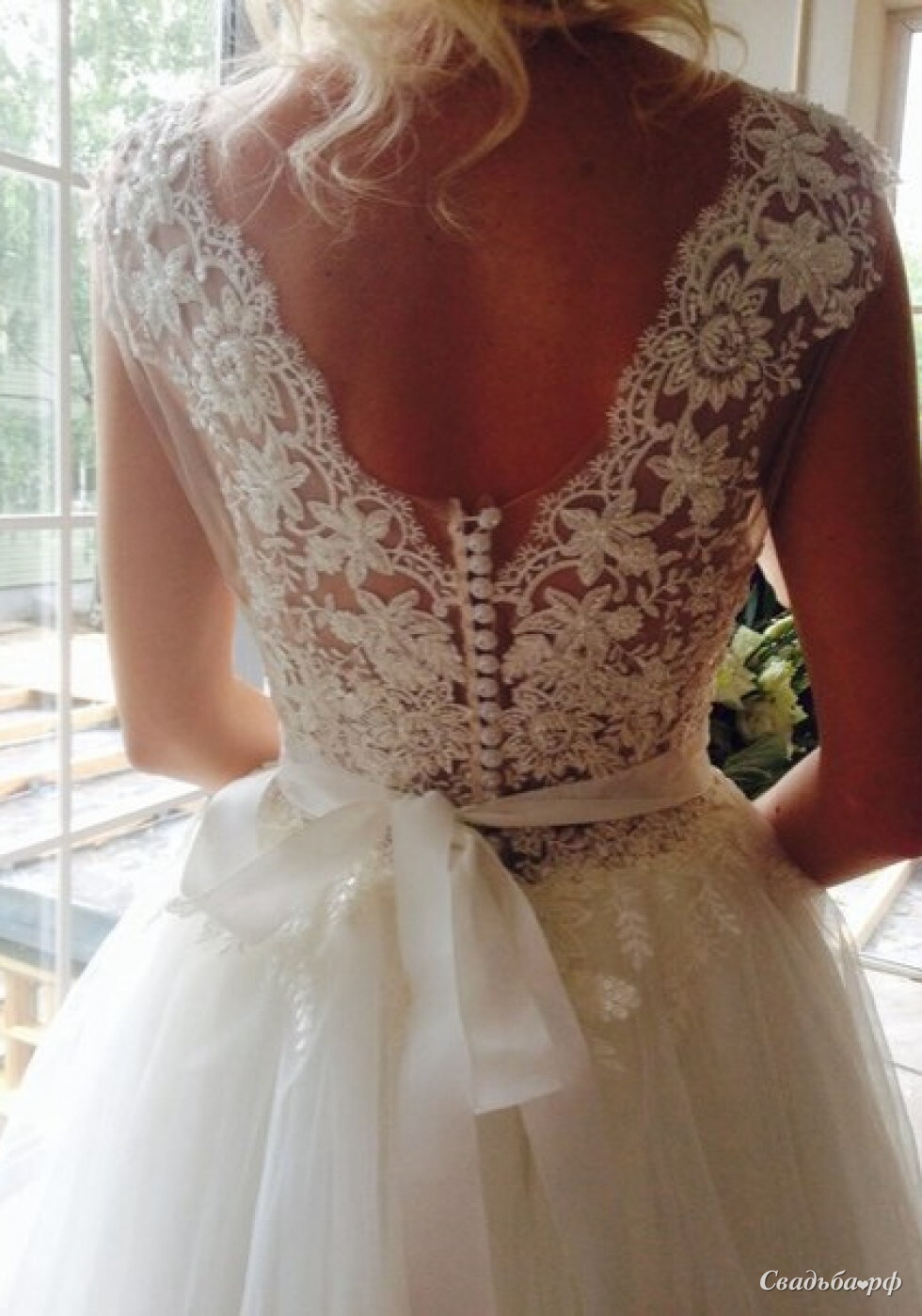 Свадебное платье с легкой юбкой А-силуэта, корсет выполнен из нежного кружева.