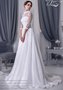 Свадебное платье Ксавия из коллекции Рассыпающая Звезды... дизайнера Svetlana Lyalina поможет создать целомудренный образ невесты. Полупрозрачная вставка на груди и рукава из такой же ткани гармонично сочетаются с воротничком-стоечкой. Элегантный корсет без лишнего декора подчёркивает талию. Длинная юбка свободного покроя переходит в шлейф.