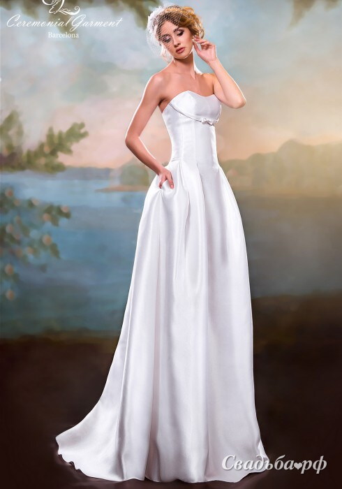 Свадебное платье Алекса из коллекции SL Cremonial Garment Barcelona дизайнера Svetlana Lyalina выполнено из благородного атласа. Модель отличается оригинальным фасоном и безупречным исполнением. Бюст подчёркнут тонкой лентой и небольшим бантом. Длинная юбка свободного покроя доходит до самого пола. Наряд не перегружен декором.