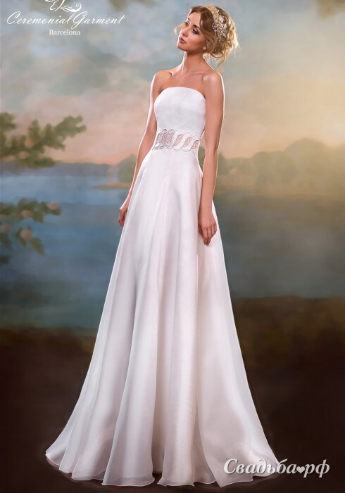Свадебное платье Антония из коллекции SL Cremonial Garment Barcelona дизайнера Svetlana Lyalina отличается минимализмом и идеальными формами. Элегантный корсет с открытой зоной декольте украшен необычным поясом. Длинная юбка с мягкими складками струится до самого пола. Модель подчеркнёт достоинства фигуры и безупречный вкус невесты.