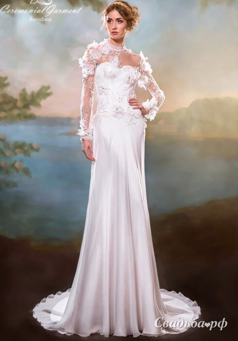 Свадебное платье Оделис из коллекции SL Cremonial Garment Barcelona дизайнера Svetlana Lyalina понравится самым романтичным и нежным натурам. Закрытый верх наряда выполнен из полупрозрачного кружева и украшен цветами ручной работы. Длинная юбка струится до самого пола и переходит в шлейф. Пикантный вырез на спине приковывает взгляды.