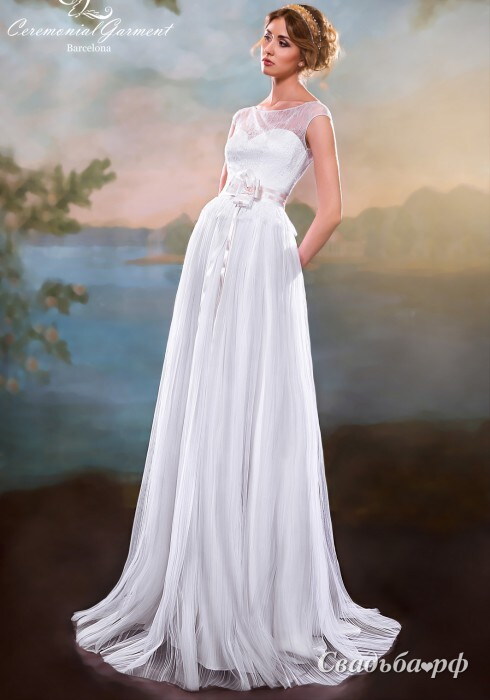 Свадебное платье Рейна из коллекции SL Cremonial Garment Barcelona дизайнера Svetlana Lyalina украшено полупрозрачными вставками на груди и спине. Талия подчёркнута тонким поясом с крупным бантом. Длинная юбка свободного покроя струится до самого пола и переходит в небольшой шлейф. Лёгкий и нежный образ для романтичной красавицы.