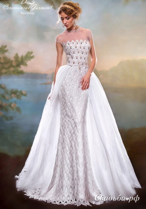 Свадебное платье Табата из коллекции SL Cremonial Garment Barcelona дизайнера Svetlana Lyalina представляет собой эффектный наряд-трансформер. Облегающая модель с оригинальной текстурой дополнена съёмной юбкой для большего объёма. Полупрозрачная вставка на груди придаёт образу особый шик. Шлейф гармонично завершает образ.