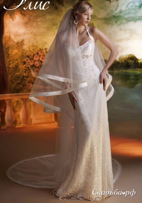 Свадебное платье Элис из коллекции Отражение Вечности дизайнера Svetlana Lyalina может похвастаться оригинальным шлейфом из полупрозрачной ткани. Облегающий наряд с тонкими бретелями и открытой зоной декольте украшен по всей длине кружевными вставками. Юбка прямого покроя струится до самого пола и зрительно вытягивает фигуру.