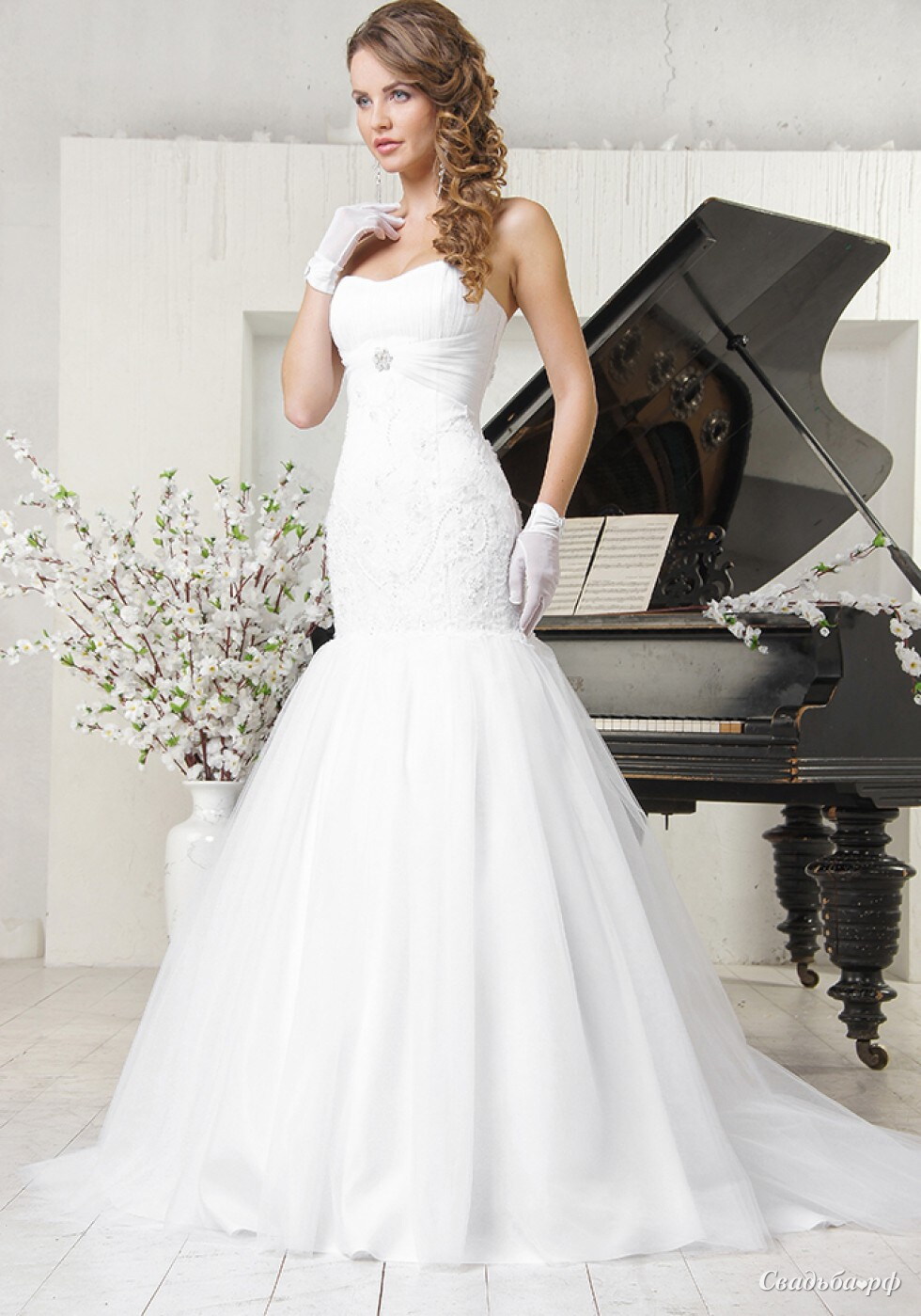 Модель Patrisia представлена в свадебном салоне Belle Amore, цена по акции 26000 рублей. Роскошное свадебное платье с открытой зоной декольте зрительно увеличивает бюст и выгодно подчёркивает женственные изгибы. Облегающий наряд украшен тончайшей вышивкой ручной работы. От середины бедра начинается пышная юбка. Вы будете на высоте!