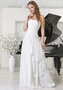 Модель Camea представлена в свадебном салоне Belle Amore, цена по акции 14000 рублей. Лёгкое свадебное платье с открытой зоной декольте и струящейся юбкой просто создано для романтичного образа современной невесты. Заниженный корсет вручную расшит бисером. Длинная юбка с несколькими воланами по боку смотрятся оригинально и свежо.