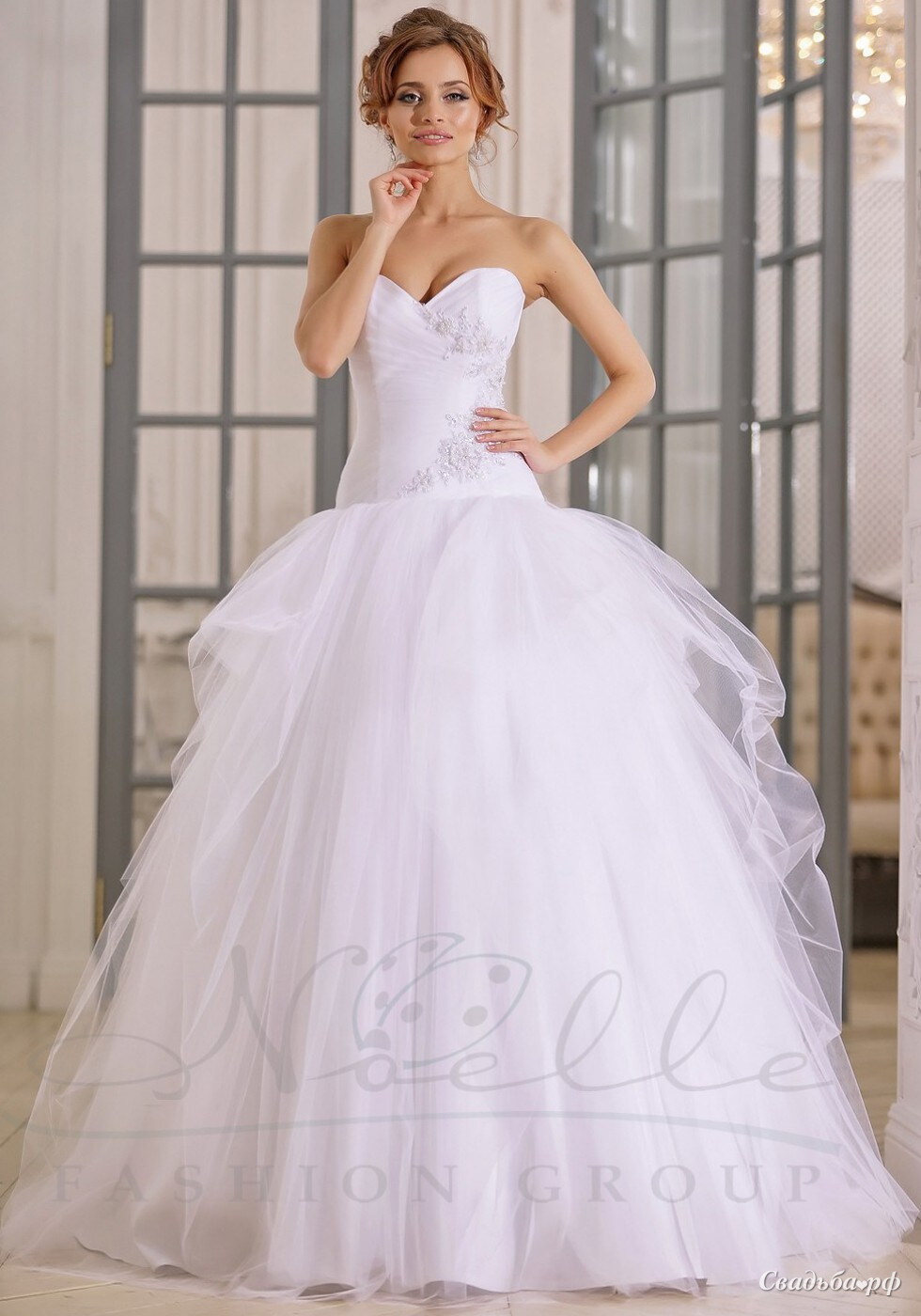 Роскошная модель свадебного платья модели "Валенса" силуэта "Принцесса" станет украшением для изысканных невест желающих подчеркнуть фигуру чуть заниженным корсетом.