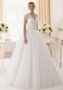 Восхитительная модель из кружева и фатина, с акцентом на талии в виде вышивки из бусин и стразов. Романтичный V-образный вырез сформирован из тончайшей кружевной ткани, изумительно красивые узоры которой особенно эффектно смотрятся на фоне нежной кожи плеч. Классическая пышная юбка делает платье похожим на роскошный наряд королевской особы.