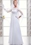 Элегантная модель из летящего шифона в сочетании с кружевом шантильи. Нежное кружево покрывает строгий корсет, зону декольте и формирует элегантный округлый вырез и кокетливый короткий рукавчик. На линии талии расположена восхитительная вышитая композиция из бисера и бусин. Мягкая струящаяся юбка красивыми волнами ниспадает на пол.