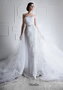 Шикарная модель из утонченного кружева с отстегивающимся фатиновым шлейфом. Ручная работа. Изысканное тонкое кружево окутывает строгий корсет с элегантным прямым лифом и спускается по всей длине неширокой мягкой юбки. Декоративный пояс из бисера и бусин эффектно выделяет линию талии. Великолепный невесомый шлейф из фатина идеально дополняет образ.