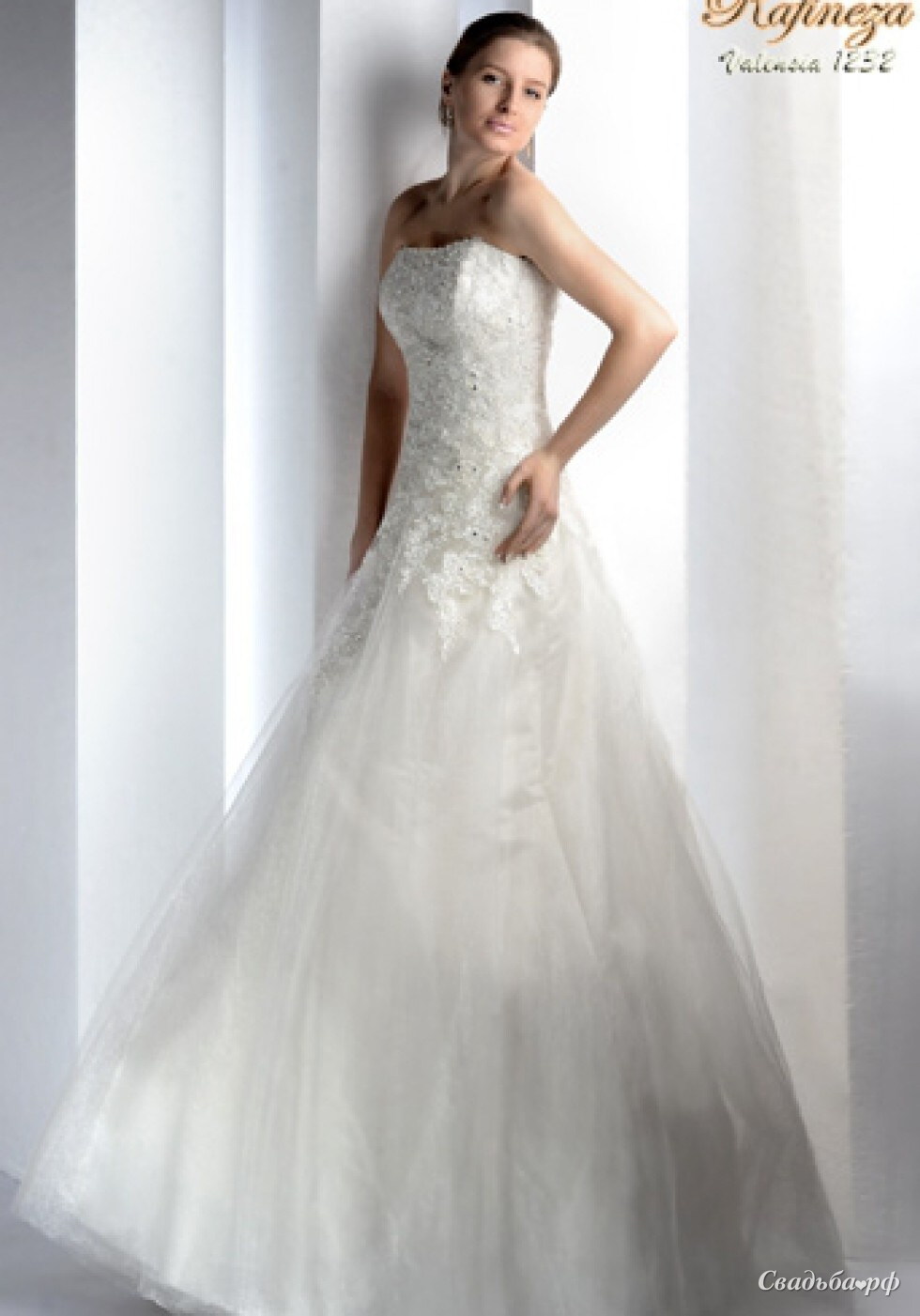 Роскошная модель предназначена специально для того, чтобы эффектно подчеркнуть достоинства Вашей фигуры! Расшитое стразами, бисером и бусинами кружево в сочетании с фатином создает неповторимый образ. Удобная шнуровка предоставляет прекрасную возможность добиться идеальной посадки модели на фигуре. Пышная юбка достойно завершает этот идеальный наряд.