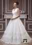 Пышное подвенечное платье в бальном стиле выполнено из нежнейшего фатина и атласа. Обильное украшение в виде россыпи камней в области пояса и легкое, невесомое кружево по подолу (низу) превращает это платье в шедевр. Лиф замечательно подчеркивает грудь, правильно расставляя акценты. Подобный наряд подойдет хрупкой, невысокой невесте.
