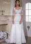 Нежное изысканное кружевное свадебное платье А-силуэта от известного дизайнера свадебной моды Натальи Верестовой. Прекрасно подойдет как для гражданской церемонии, так и для венчания в церкви. Особую изюминку наряду придают укороченные прозрачные рукава, расшитые кружевом и атласный пояс контрастного цвета, который акцентирует внимание на линии талии.