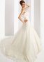 Кружевное платье А-силуэта с открытой зоной декольте привлекает внимание к обнажённым плечикам невесты. Лиф украшен необычными лепестками, благодаря чему бюст зрительно увеличивается. Корсет идеально садится по фигуре и отлично сочетается с длинной юбкой. Подол дополнен полупрозрачным верхним слоем с цветочным орнаментом.