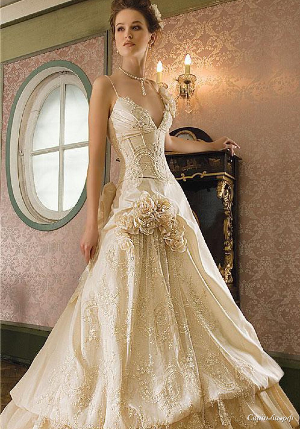 Роскошный свадебный костюм представлен известным отечественным брендом Le Rina. Пикантный корсет с элементами кружева дополнен тонкими бретельками и глубоким вырезом. Юбка выполнена из благородной тафты и украшена искусной вышивкой. Объёмные цветы ручной работы уютно разместились на бедре. Эффектный образ для истинной модницы.