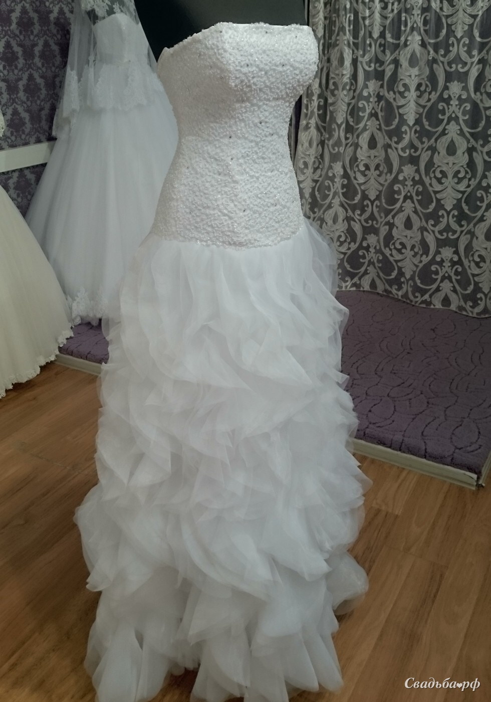 Свадебное платье со строгим корсетом и мягко струящимися складками юбки
