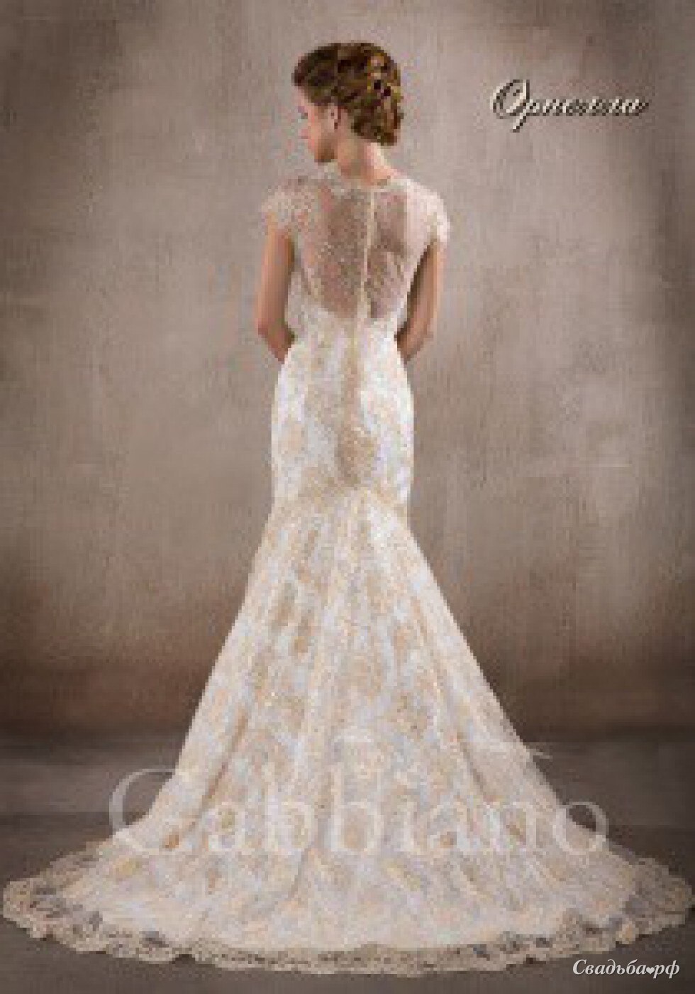 Стильное силуэтное платье, выполненное из натурального кружевного полотна, с шикарным шлейфом.