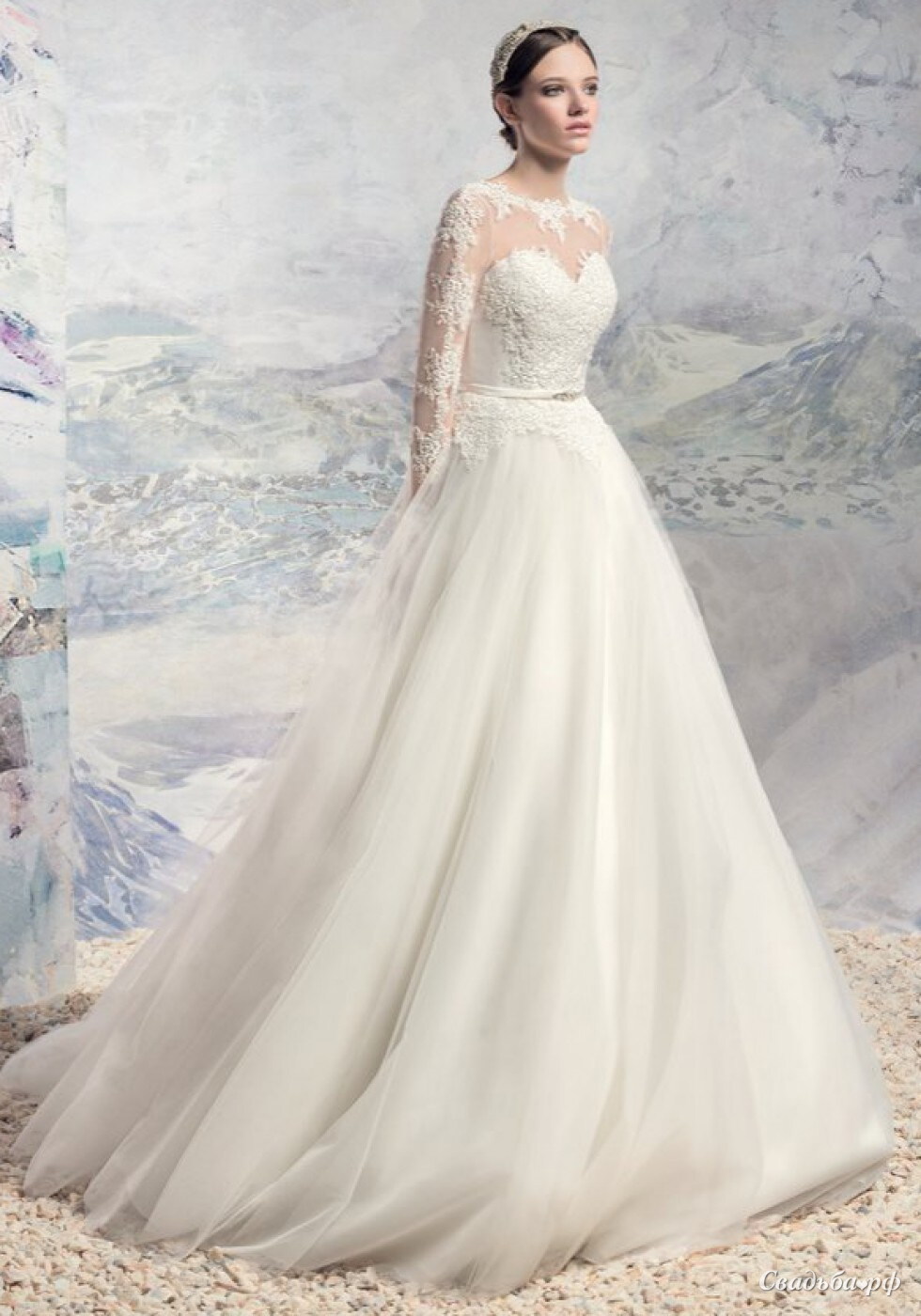 Платье в стиле принцесса из тюльмарина с закрытой спиной и длинным рукавом.