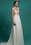 Свадебное платье греческого стиля с закрытым верхом и струящейся шифоновой юбкой создаёт очень нежный и романтический образ невесты.