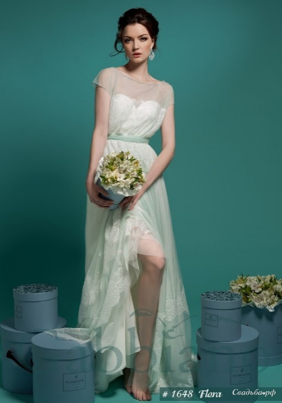 Свадебное платье 2016 года из новой коллекции Габбиано прямого силуэта, струящаяся фатиновая юбка из еврофатина.