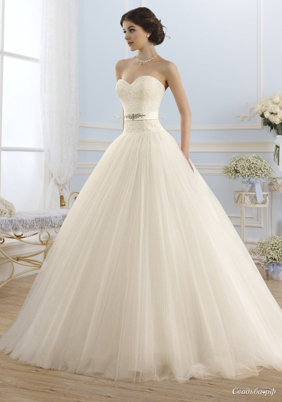 Свадебное платье с пышной юбкой из фатина, кружевной корсет.