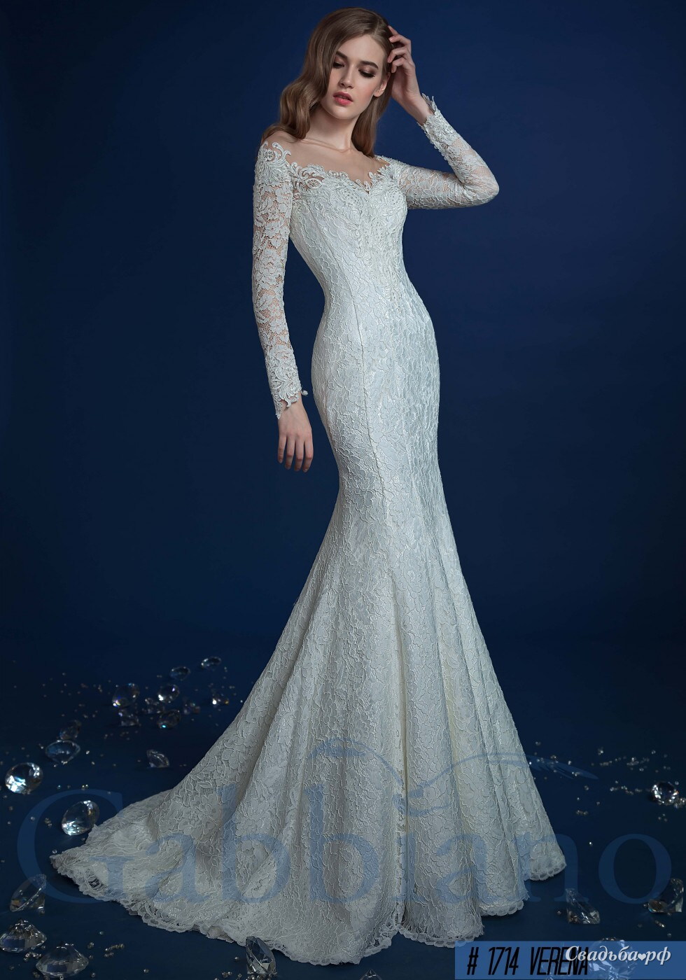 Элегантное свадебное платье силуэта рыбка/русалка, закрытый верх с длинным рукавом.