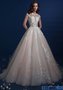 Классическое свадебное платье с пышной юбкой и кружевным закрытым верхом.