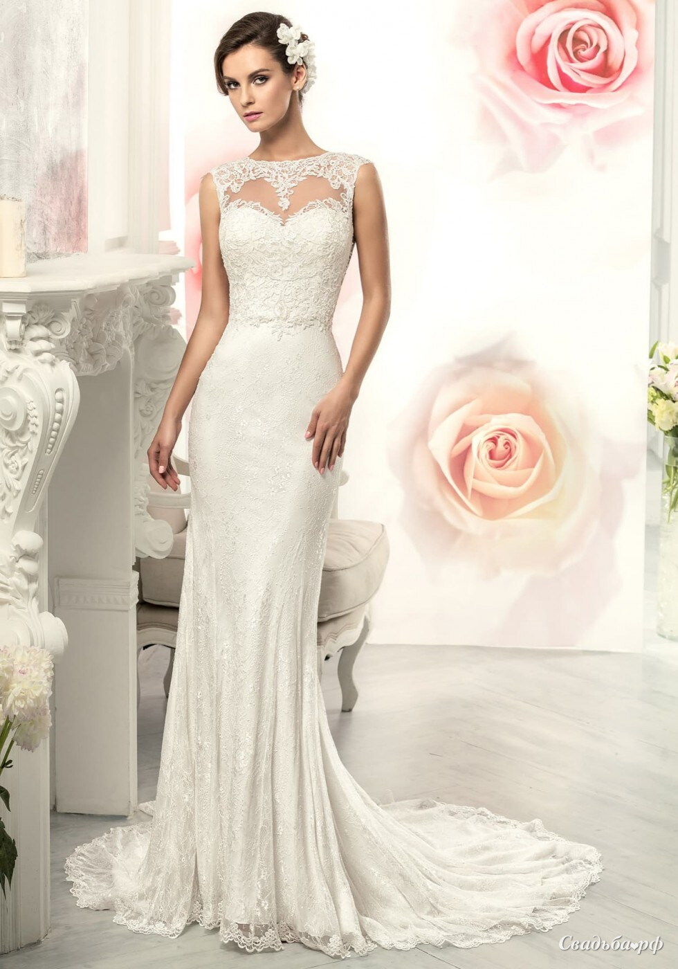 Стильное облегающее свадебное платье силуэта рыбка с красивым кружевным шлейфом подчеркнет Вашу фигуру.