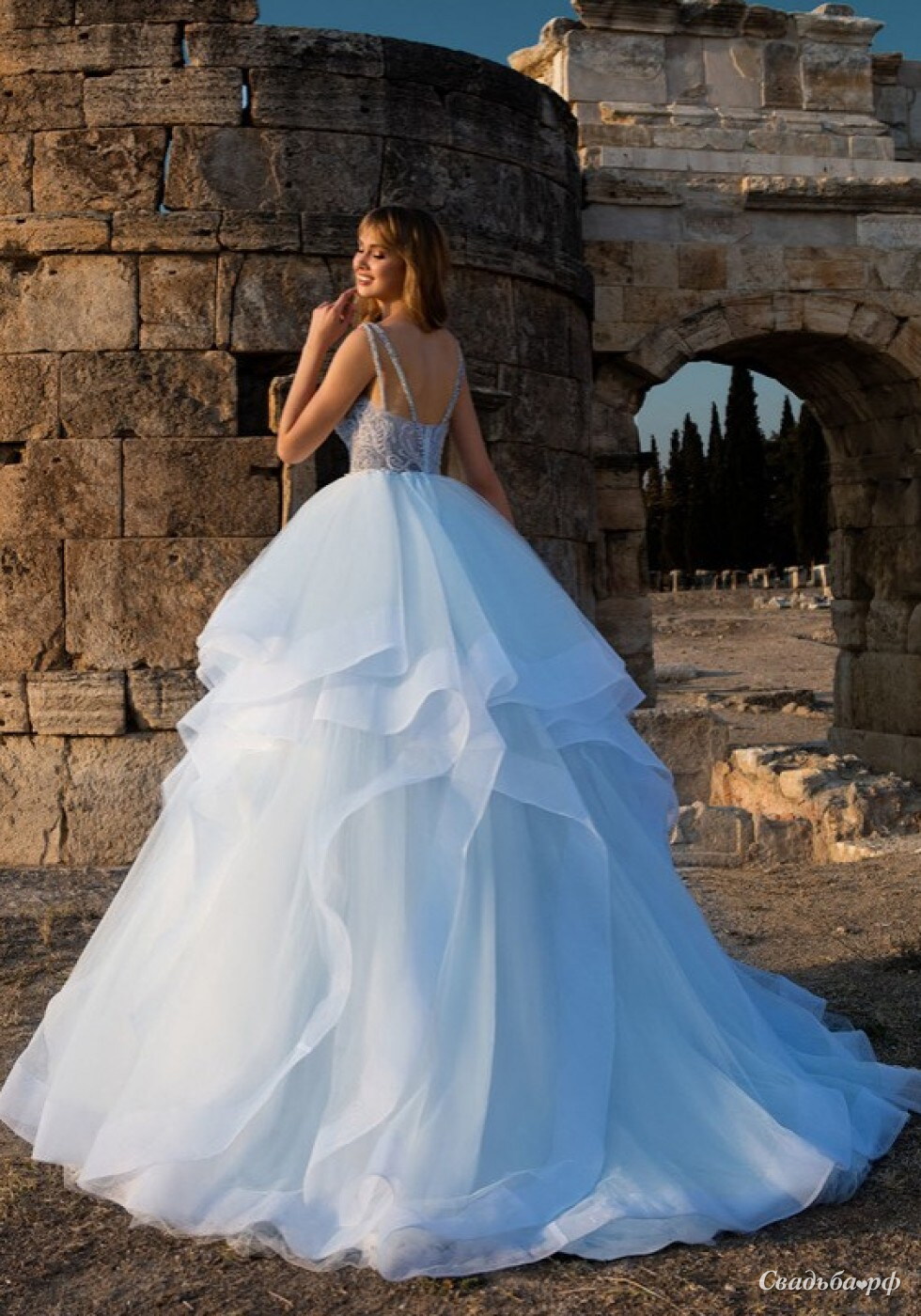 Свадебное платье с пышной фатиновой юбкой со шлейфом. Корсет расшит бисером, ручная работа.