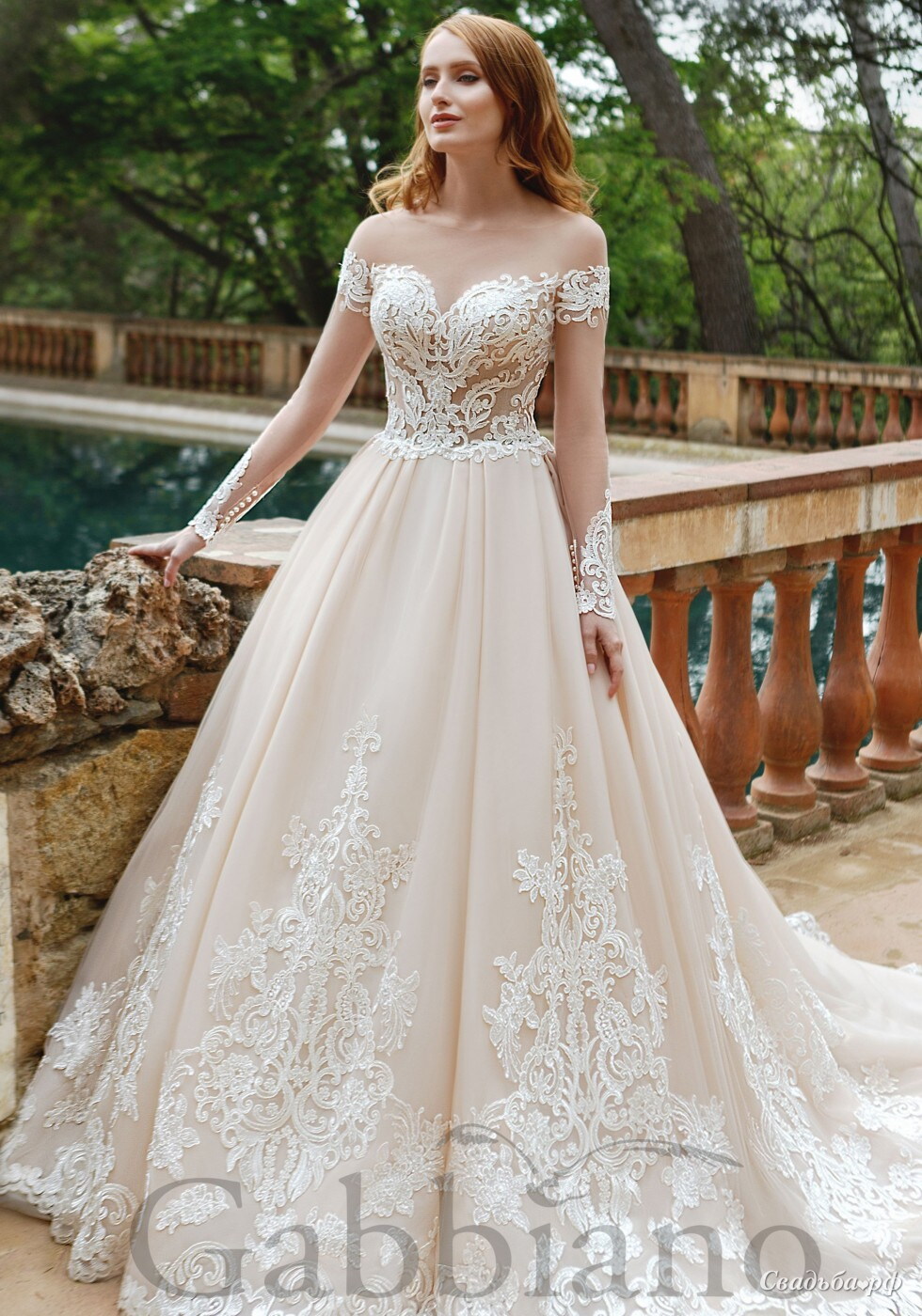Свадебное платье c пышной юбкой и длинным рукавом.