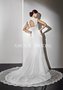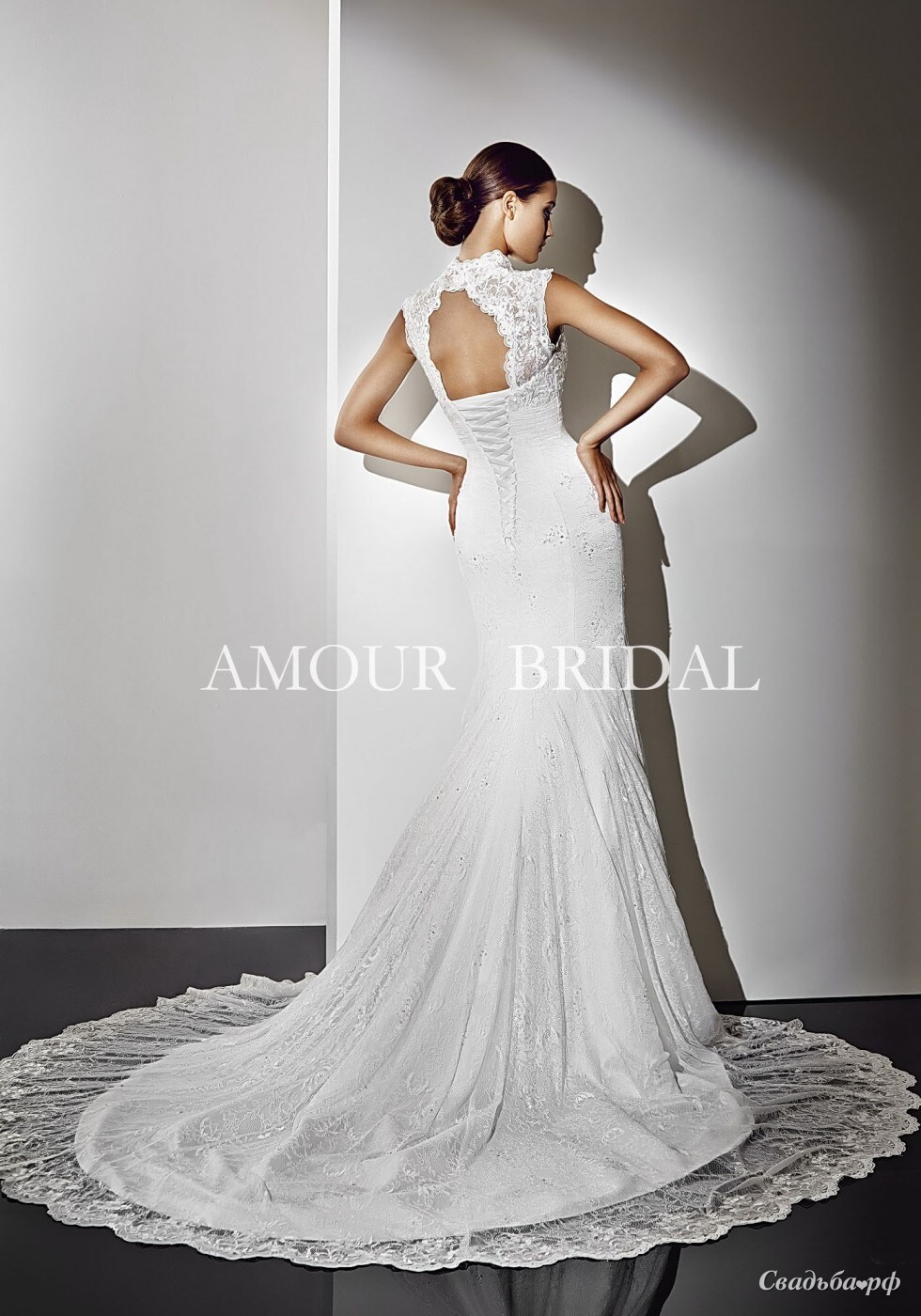 Шикарное платье из кружева со шлейфом, на спинке шнуровка. Фигурный вырез. Декорировано кружевом. Подчеркивает фигуру.
