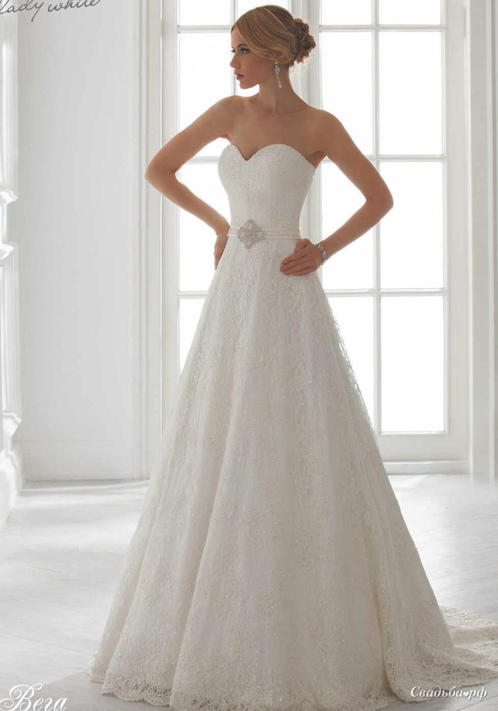 Гипюр кордовый, расшитый, пояс съемный, декорированный брошью.