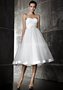 Легкое короткое элегантное свадебное платье. Открытый верх-бюстье, вырез сердечком. Пышная юбка "французская длина" эффектно подчеркнута атласным кантом. Талия слегка завышена.