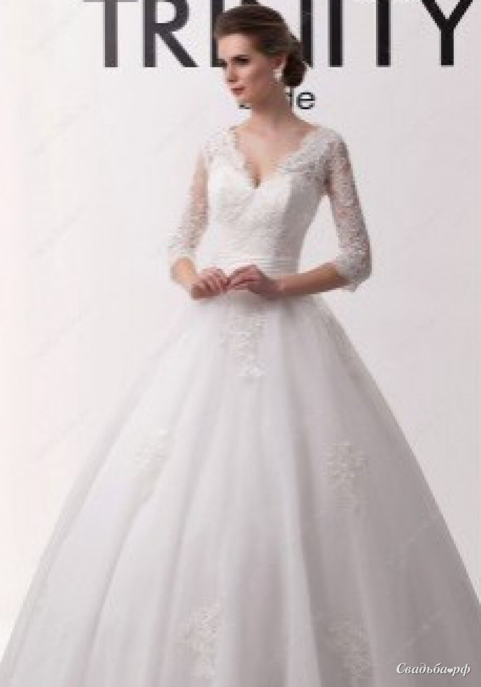 Шикарное пышное свадебное платье с длинными рукавами. Верх и аппликация по юбке из кордового кружева.