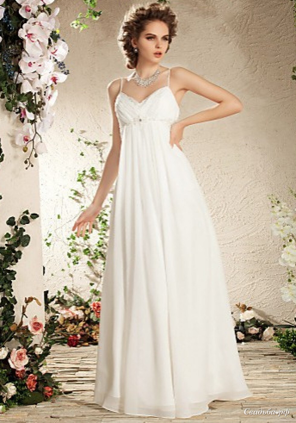 Легкое шифоновое платье в греческом стиле. Тонкие бретели. Подойдет будущим мамочкам.