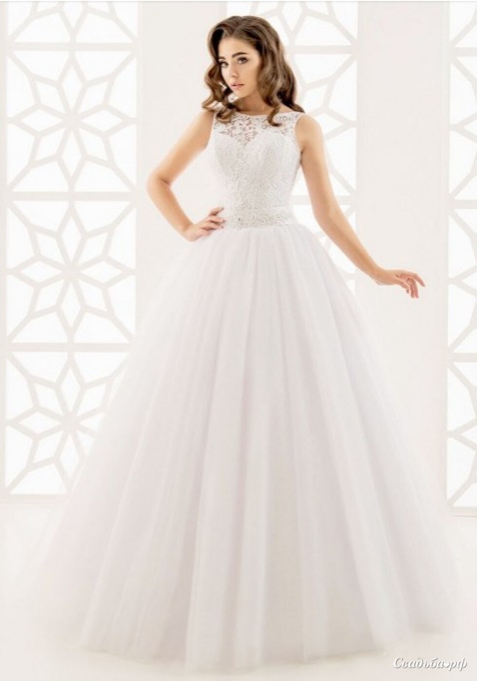 Очаровательное свадебное платье силуэта "Принцесса". Закрытый верх маечкой из нежного бархатного кружева, пышная юбка из евро-фатина. Линию талии подчеркивает вручную расшитый пояс. Образ Диснеевской принцессы.