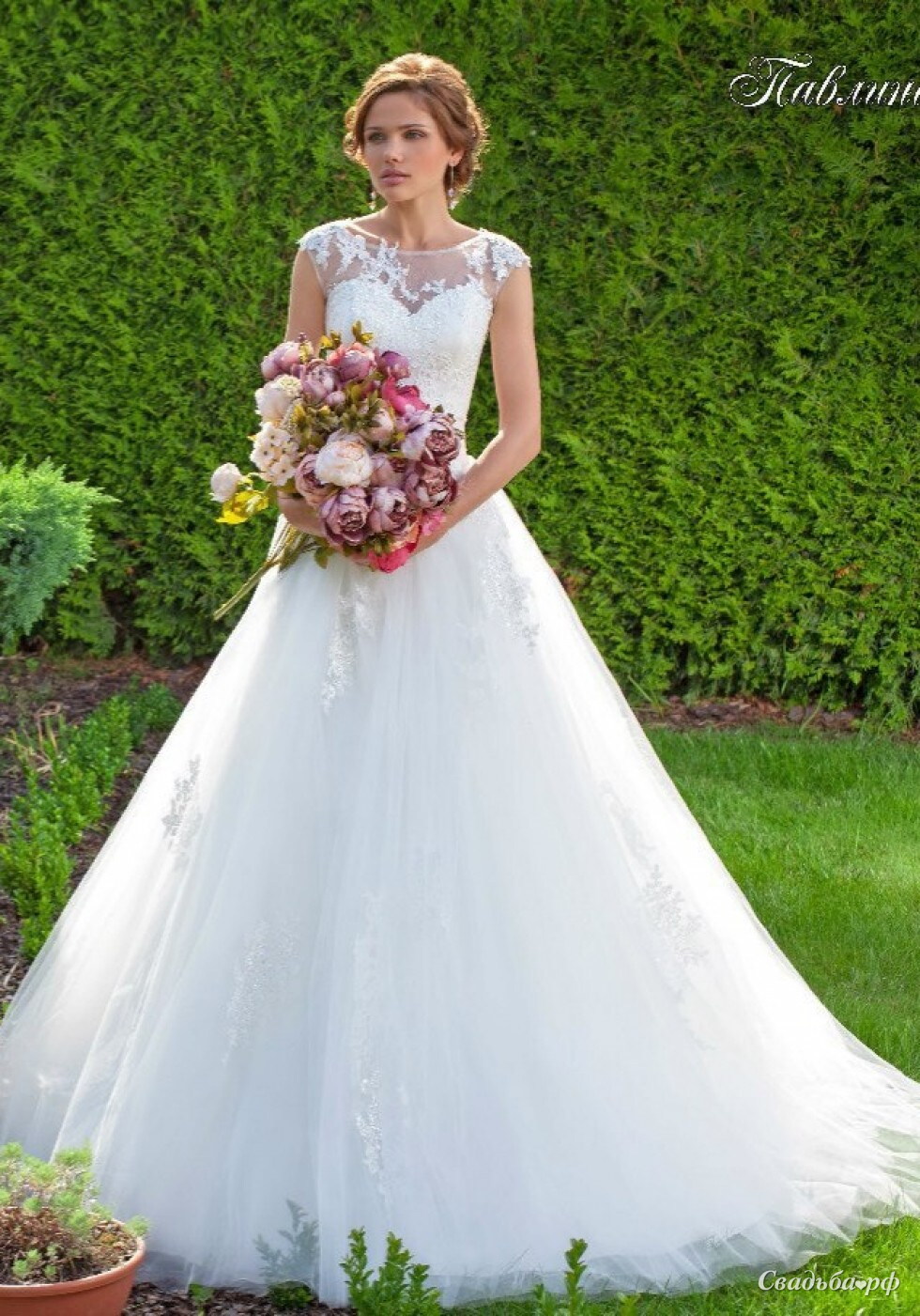 Шикарное свадебное платье А-силуэта. Украшенное кружевом и расшитое вручную свадебное платье "Павлина" из нежнейшей евросетки вряд ли оставит кого-то равнодушным. Закрытый верх. Платье подойдет для церемонии венчания. Красиво будет смотреться и на выездной церемонии. "Капелька" из тонкой, почти прозрачной сетки на спинке. В комплекте пояс.