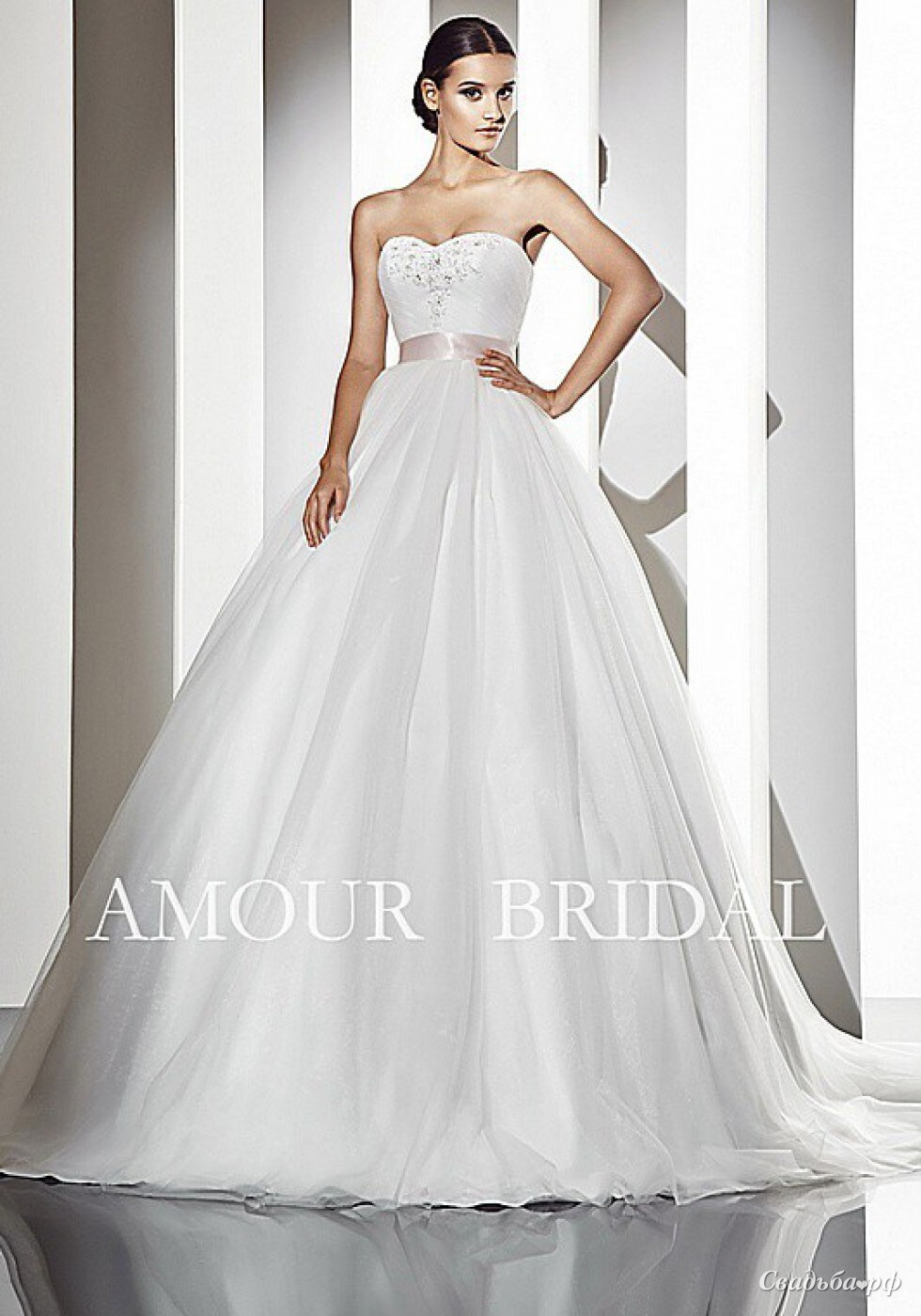 Хит продаж! Очень нежное и романтичное свадебное платье с пышной юбкой и небольшим шлейфом. Прекрасно сочетается со многими кружевными болеро из этой же коллекции.