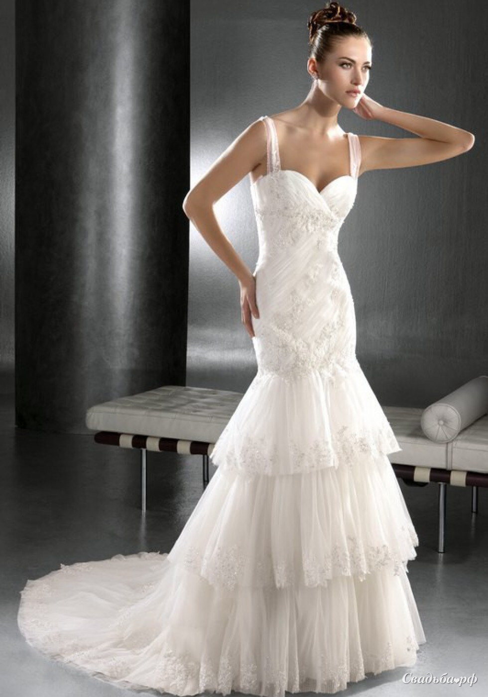 Эффектное свадебное платье "русалка" с небольшим шлейфом. Идеально подчеркивает фигуру.
