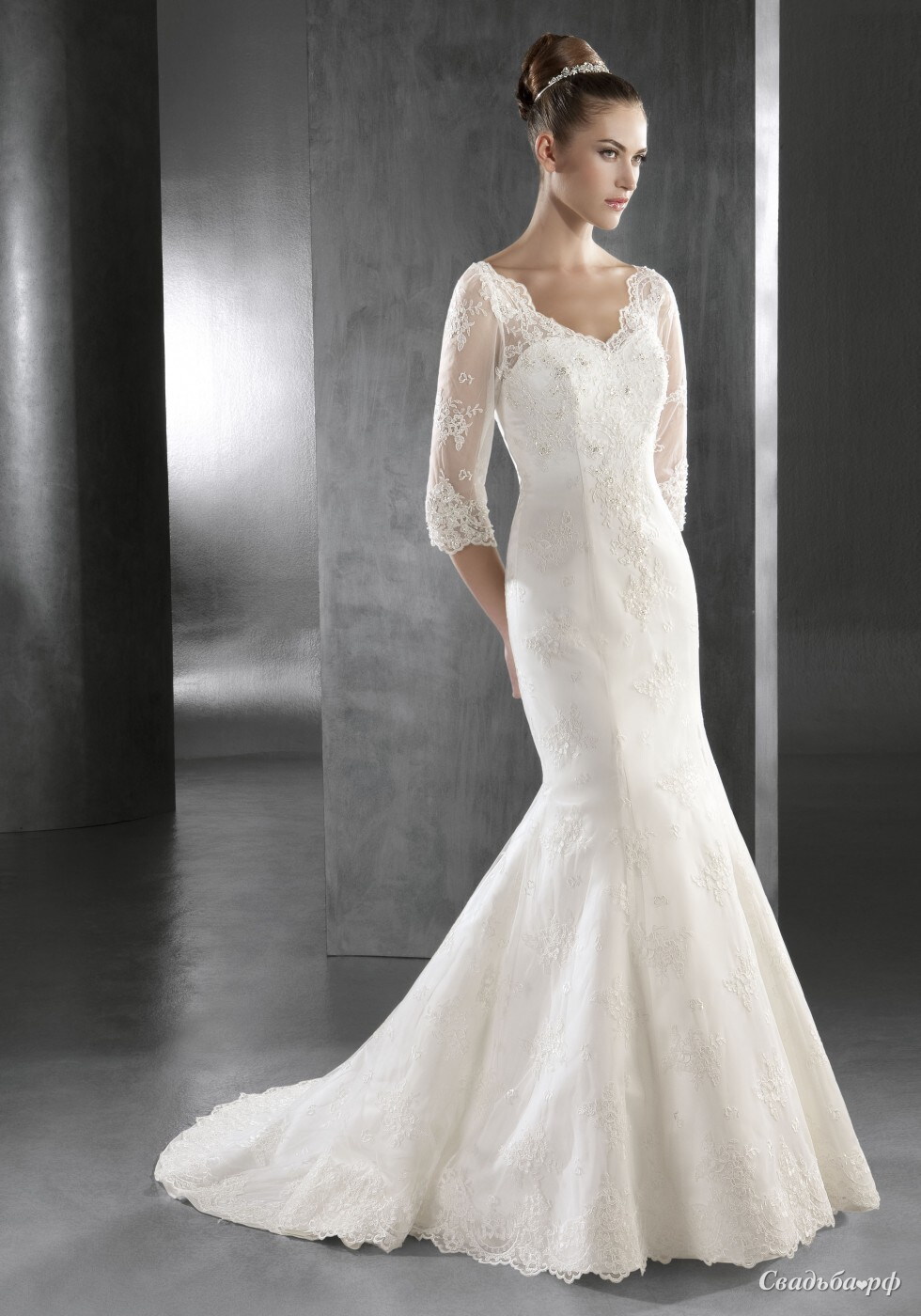 Очень нежное и женственное свадебное платье с небольшим шлейфом. Идеально подчеркивает фигуру.