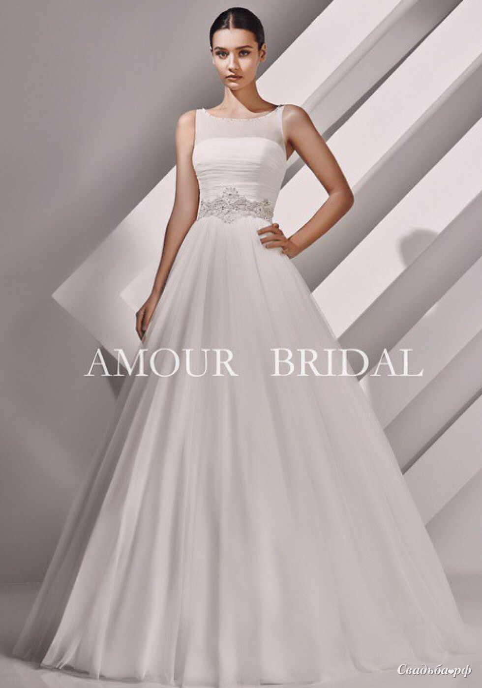 Очень нежное свадебное платье из струящегося фатина. Эффектно подчеркивает фигуру.