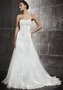 Эффектное кружевное свадебное платье с небольшим шлейфом.