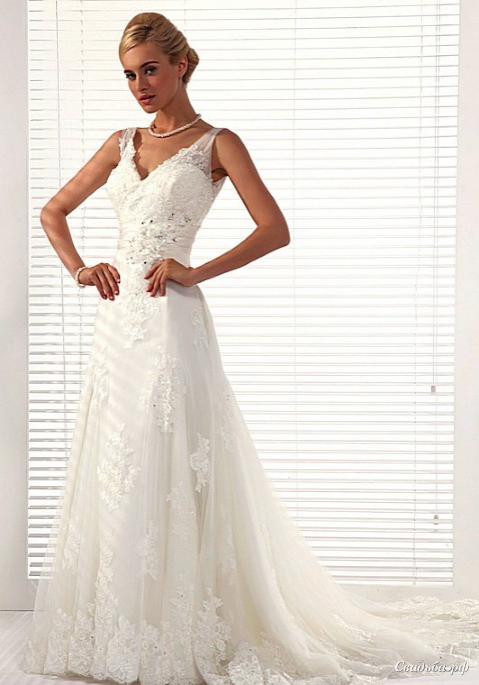 Эффектное свадебное платье с небольшим шлейфом. Спинка на молнии. Облегченный корсет.