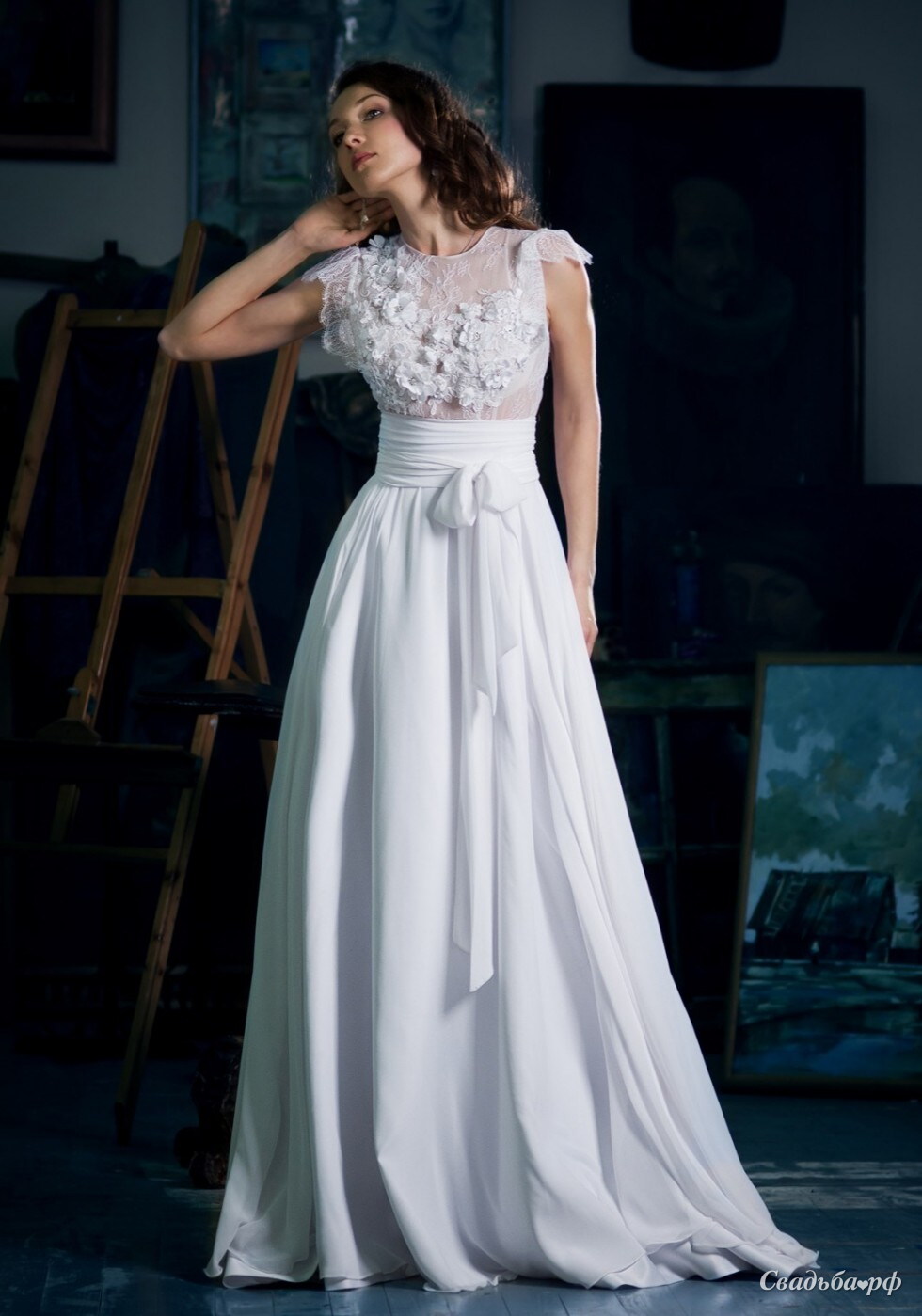 Оригинальное свадебное платье в стиле "рустик" с небольшим шлейфом. Очень легкое и комфортное. Облегченный корсет. Выгодно подчеркивает фигуру.